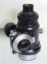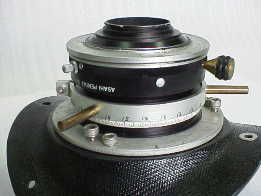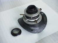ペンタックス67用のヘリコイド接写リングを利用して作りました。台座部はFRPです。これを作るために卓上旋盤を購入しました(^^;。ちょっと高かったですが、大変重宝しています。 台座部は3カ所の押し引きネジでスケアリングを調整できるようになっています。 上部はカメラ回転装置になっていて、右側に見える止めネジをゆるめてカメラを回転させることが出 来ます。ヘリコイド部にはスケールを張り付けてあり、ピントの再現の目安になっています。 |