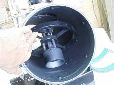 元のバッフルチューブはかなり短く、直入迷光が接眼まで届いてしまう様な状況でした。今回やっとその気になったので(^^;、延長改造をしてみました。左の写真の一段細くなったところが延長した部分です。 | ||