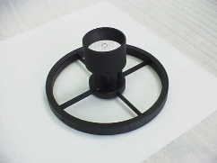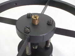| スパイダーリング。元はアルミ鋳物製の太い3本スパイダーの一体型だったのですが、金切り用の鋸歯を使って4本スパイダーに改造しました。 | カセグレン副鏡を付けたところ。先にカセグレンの光軸修正を行い、主鏡を動かさずに斜鏡のみでニュートン焦点の光軸調整をします。 | ||