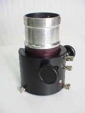 ◆ファインダー ビクセンのST4の光源部を利用して作った透過型のファインダーです。光源部から45度に傾けられたガラスにレチクルを投影し、それを星と一緒に見ますのであたかも星空にレチクルが浮かんでいるように見えます。原理的にはテルラドなどと同じものです。 ただ、等倍の透過式そのままだと微光星が消えてしまい、おもしろくありません。そこでジャンクで入手したワイドビノのかたわれを取り付けてみました。すると見える星の数がぐんと増え、導入が大変楽になりました。倍率も低く正立ですので、どこを見てるかわからなくなることもありません。 ST4のレチクルは中心付近がうるさいので細いフェルトペンで第2円くらいまで塗りつぶしてあります。また、そのままだとレチクルが小さいので、ジャンク箱にあった適当なレンズに交換して、大きく投影されるようになっています。45度の円形ガラスと保護用の前面ガラスはカメラ用の透明フィルタです。 ちなみに、後に笠井トレーディングから「ワイドファインダー」として発売された物の原型です。 |