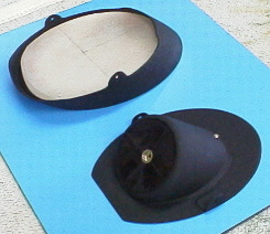 右下が斜鏡セルのインナーで、左上がアウターです。例によってFRPで製作しました。 アウターにはすでに斜鏡が入っています。インナーをアウターに滑り込ませて、左右のネジ2本で固定します。 |