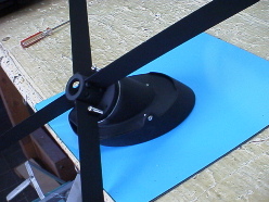 スパイダーはステンレスの0.4mm厚の板で作りました。幅は30mmほどです。 ステンレス板の切断は、裁断機の親分みたいな切断機(押し切り)で行いました。まっすぐ切れる上に、切り口がほとんど曲がらないので良いです。 |