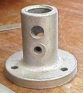 スパイダーの中心になるボスは、レーシングカートのステアリングボスを使いました。アルミの鋳物で出来ています。 これを旋盤加工して使用しました。 |