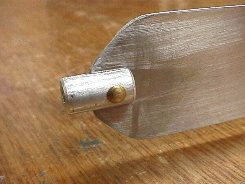 鏡筒への取り付け部は、アルミ丸棒の中心に4mmのメネジを切ったものを、真鍮釘でスパイダーにカシメて取り付けてあります。 ここは僅かに首を振るようになっています。 |