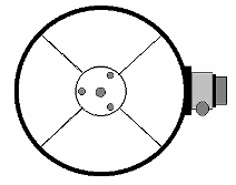斜鏡セル取り付け部(光軸修正部) 色々な形状が考えられますが、要は中心に引きネジ、周囲3カ所に押しネジが付いていればよいわけです。この押しネジは必ずしも正確に120度間隔で付いている必要はなく、スパイダーの干渉を避けて僅かにずらす程度でしたら問題ありません。